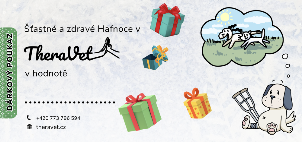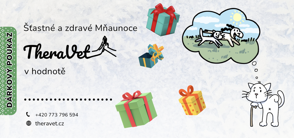 Hledáte originální dárek pro psího či kočičího kamaráda? Darujte zdraví a pohyb – dárkový poukaz na fyzioterapii v TheraVet potěší každého mazlíčka.