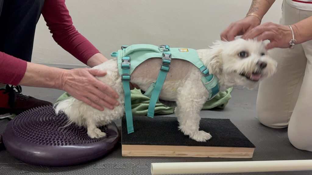 Fyzioterapie je kombinací odbornosti, empatie a trpělivosti. V galerii můžete vidět, jak probíhá práce v ordinaci TheraVet, jaké pomůcky používáme a jak se zvířata cítí během terapie – klidně, bezpečně a v dobrých rukou.